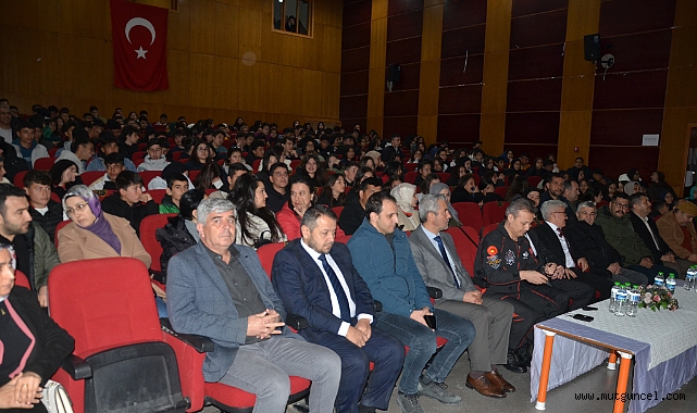 İlk konuşmayı yapan İlçe Kaymakam Vekili İsa Uğur, her şeyden önce iyi bir insan olmaya gayret gösterilmesi gerektiğini belirterek, "Önce iyi insan oalacağız. İkincisi de vizyon sahibi insan olalım. Gerçekten üklemizin ihtiyavcı olan bu iki durum. Bu iki durum da emin olun sizi başarıya götürecektir" dedi. Daha sonra konuşan Alper Gezeravcı, Mut'ta 135. şehir değişikliğiyle 284. programı yaptığını söyledi. Gezeravcı, bu kadar kısa bir zaman dilimi içersinde bu kadar fazla şehir değiştirme çok sayıda program yapmalarının sebebinin huzura gelip bir lütufta bulunnak olmadığını kaydererek, "Bu yaptığımız bir lütuf değil. Çünkü Türkiye Cumhuriyeti 100 yıllık tarihinde icra etmiş olduğu insan değil uzay misyonunu bir tane Türkün uzaya gidip macera yaşaması için gerçekleştirmedi. Ülkemizin görevi dünyanın en zor coğrafyalarından birinde yüzlerce yıldır güçlü iradesiyle ayakta kalmayı başarabilmiş bir ülke olarak yıllar boyu sınanan kader çizgimizde özgüveni sürekli yaptalanmaya çalışılan çocuklarına geleceğin teminatı olan siz genç kardeşlerimizin özgüvenini ayağa kaldıracak ve gelecekte başarmak istediğiniz işlerde ilham alacağınız bir hikaye olarak yazdık.Ve görevin merkezine siz değerli kardeşlerimizi koyduk. Bunu bir kişinin hikayesi olarak değil, gelecekte bir sonraki bölümün altında kendinizin imza atacağı bir hikayenin sadece başlangıcı olarak alın. İleride bugün sadece başlangıcını yaptığımız bu uzay görevlerinin devamında sizlerin isimlerini göreceğiz" diye konuştu.