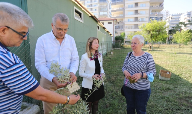 Mezitli Kent Konseyi Sibel Gelbul ve üyeleri, Mezitli Belediye Başkanı Neşet Tarhan'a sürpriz yaparak Engelli Meclisi bahçesinde zeytin koruluğundaki fidanlara ismini verdi.