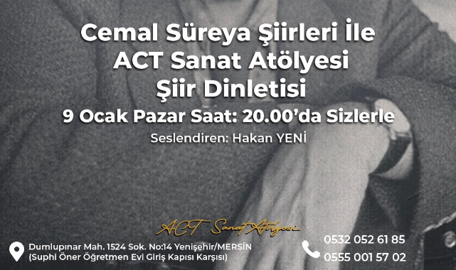 “Sen bakma bu kadar hüzünlü şeyler yazdığıma, ben çok gülerim ve gülerken yalan olduğunu kimse anlamaz.” gibi sözlerle gönüllere dokunan şairin yaşamından ve aşklarından kesitlerin de okunacağı dinletide aynı zamanda “Aşk…” , “Sizin Hiç Babanız Öldü mü?” , “Üvercinka” , “Uzaktan Seviyorum Seni” şiirleri de sahnede dinleyebileceğiz.