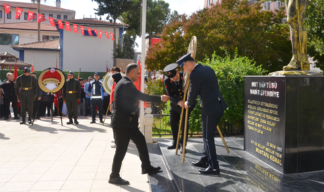 Daha sonra ilçe Mut Kaymakamlığı adına İlçe Kaymakamı Osman Çelikkol, Garnizon Komutanlığı, Belediye Başkan Vekili Atatürk Anıtına çelenk koydu. Programa İlçe Kaymakamı Osman Çelikkol, Garnizon Komutanı, Belediye Başkan Vekili Akın Çelik, Cumhuriyet Başsavcısı Zuhal Solmaz, daire amirleri ve vatandaşlar katıldı.Çelenklerin konmasının ardından saygı duruşu ve İstiklal Marşı okundu.