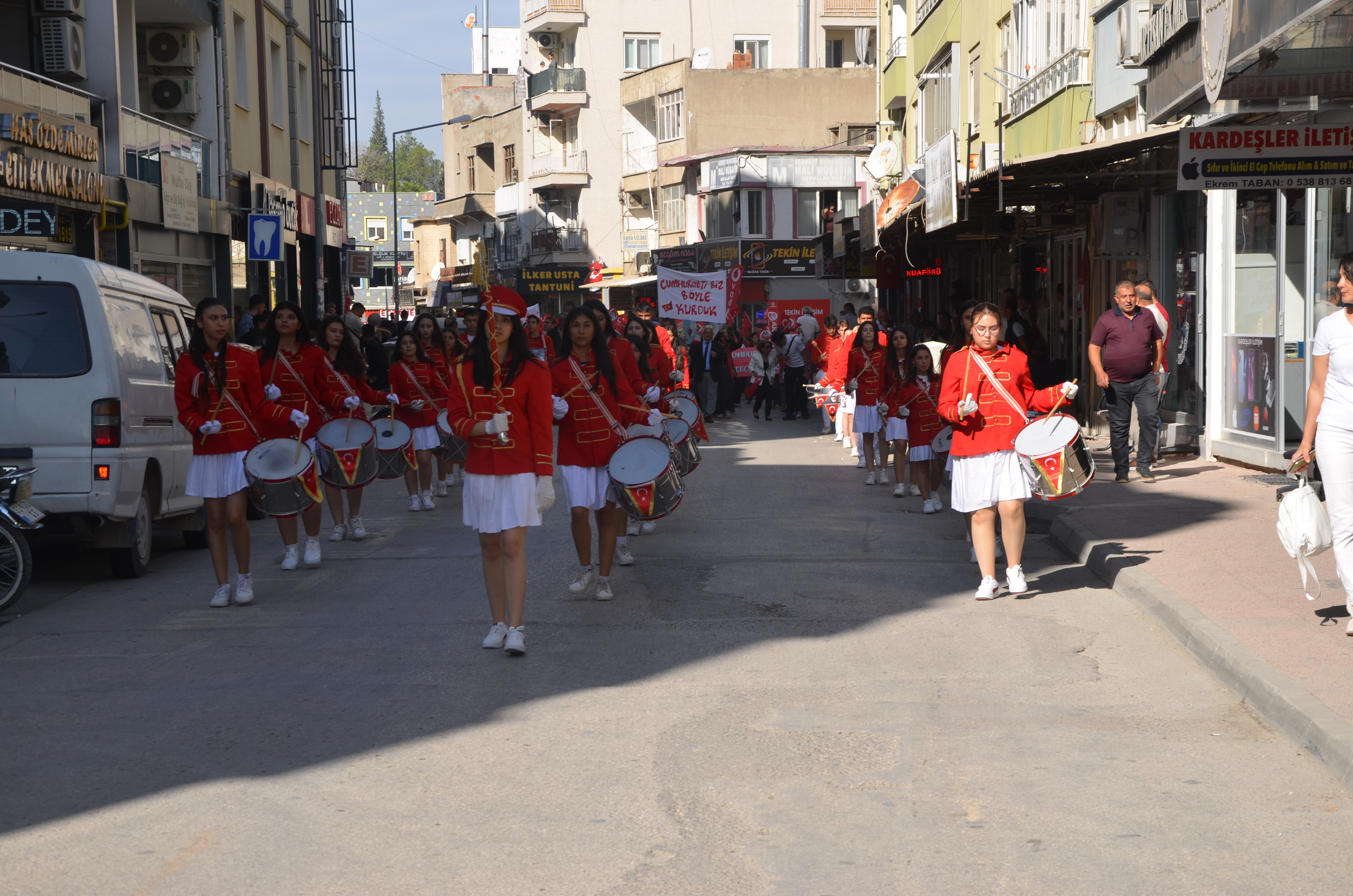 İç Çarşı ve Hükümet Caddesi güzergahındaki etkinlikte öğrenciler, ellerinde pankart ve dövizlerle Cumhuriyet'in 102. yılını kutladılar. Bando eşliğinde dönem kıyafetleri giyen öğrenciler, okulları da öğretmenleriyle birlikte, Mustafa Kemal Atatürk'ün "Efendiler yarın Cumhuriyet'i ilan edeceğiz" manşetiyle çıkardıkları gazeteyi vatandaşlara ve esnafa dağıttılar. Gazeteyi alan esnaflardan Cemal Öz, "Çocuklarımızın Cumhuriyet Bayramı'na önem vermesi çok güzel bir duygu. Geleceğimizin garantisi teminatı gençlerimiz, çocuklarımızı tebrik ediyorum, kutluyorum. Cumhuriyet Bayramları kutlu olsun" dedi. Döviz ve pankartlarda Atatürk'ün söylediği sözler yer aldı" Etkinlik Hükümet Konağı önünde son buldu.