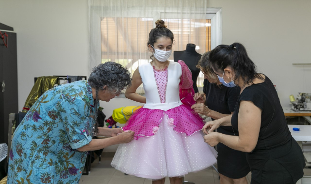 Her fırsatta kadınlara pozitif ayrımcılık yapan ve kadın emeğini öne çıkaran Mersin Büyükşehir Belediye Başkanı Vahap Seçer öncülüğünde Büyükşehir, kooperatiflere destek olmayı sürdürüyor. Bugüne kadar Büyükşehir’in farklı birimleri için Mersinden Kadın Kooperatifi Eğitim ve Üretim Atölyesi’nde dikim yapan marifetli kadınlar, bugünlerde yeni bir heyecan yaşıyor. El emekleriyle ev ekonomilerine katkıda bulunan kadınlar, Büyükşehir Belediyesi Kültür ve Sosyal İşler Dairesi bünyesinde faaliyet gösteren Şehir Tiyatrosu oyuncularının sezon boyunca sahneye koymaya başladığı oyunların kostümlerini dikiyor.İlk kostümler ‘Gökkuşağının Altında’ oyunu için dikildiEğitim ve Üretim Atölyesi’nde ilk olarak, 7 Kasım’da prömiyeri gerçekleştirilen “Gökkuşağının Altında” isimli çocuk oyunu için dikim çalışmaları gerçekleştirildi. Oyun, kadın emeği ile ortaya çıkarılan kostümlerle sahneye konuldu. Büyükşehir Belediyesi Şehir Tiyatrosu tarafından sezon boyunca sahnelenecek oyunların kostümleri bu atölyeden çıkmaya devam edecek.Kostümlerin çizimleri de Kültür ve Sosyal İşler Dairesi Tiyatro ve Sanat Koordinatörü Zehra Alev Tol tarafından yapıldı. Tol’un yaptığı çizimlerin ardından kumaşlar alındı ve Üretim Atölyesi’ne gelen oyuncuların vücut ölçülerine uygun olarak dikildi.Tol: “Şehir Tiyatrosu için ilk defa bir dekor kostüm tasarımını gerçekleştiriyorum”Alev Tol, bu çalışmanın bir ilk olduğunu dile getirerek, “Ben de Şehir Tiyatrosu için ilk defa bir dekor kostüm tasarımını gerçekleştiriyorum. Bugün oyuncularımızla birlikte buraya geldik. Onlardan ölçüleri alınıyor dikiş için ve yavaş yavaş ortaya çıkmaya başlayacak. Bence herkes çok heyecanlı” dedi.Çavuş: “Bizim için ayrı bir heyecan”Mersinden Kadın Kooperatifi Ortağı ve Mersinden Kadın Kooperatifi Eğitim ve Üretim Atölyesi Sorumlusu Gülten Çavuş, farklı bir heyecan yaşadıklarını ifade ederek, “Üretim atölyemizde birçok birimin ürünlerini çalıştık, ürettik ama bugünkü konsept çok daha farklı. Şehir Tiyatrosu'nun kostümlerini çalışacağız. Çocuk ve yetişkin oyunu var. ‘Sırça Biblolar’ ile ‘Gökkuşağının Altında’. Bizim için ayrı bir heyecan. Mersin Büyükşehir Belediyesi Şehir Tiyatrosu’nun kostümlerini dikmek ve bu coğrafyada yaşayan insanlara bu kültürü kostümle aktarmak, onlara sevinçlerini, hüzünlerini ve yaşadıkları duyguyu yansıtmak, bunlara katkı sunmak ayrı bir heyecan olacak bizim için” dedi.Çavuş, kadın kooperatiflerine desteklerinden dolayı Başkan Vahap Seçer’e teşekkür ederek, “Kadın kooperatiflerini desteklemek gerçekten ayrı bir şey. Çünkü buradaki eğitim alan kadınlar, emeklerini daha sonra üretime dönüştürüp bütçelerine ufak da olsa bir katkı sağlıyorlar. Burada kadın kooperatiflerinin amacı daha çok kadına dokunabilmek, onları hayata hazırlamak. Bu anlamda da Belediye’nin bize verdiği desteğe sonsuz teşekkür ediyorum” diye konuştu.Yelkel: “Geldiğimiz noktaya baktığımızda, çok büyük yol kat ettiğimizi düşünüyorum”Mersinden Kadın Kooperatifi Eğitim ve Üretim Atölyesi’nde kostümlerin dikimini yapan ve Mersinden Kadın Kooperatifi’nin desteklediği kadınlardan Sibel Yelkel, çok mutlu ve heyecanlı olduklarını belirterek, “Biz buraya başlarken, kadınların zamanlarını öldürmek, zaman geçirmek için gittiği kurslar olur ya o şekilde başlamıştık. Ama bugünkü geldiğimiz noktaya baktığımızda hem kendimize hem evimize destek amaçlı, kendimizi geliştirmek amaçlı çok büyük yol kat ettiğimizi de düşünüyorum. Yani Şehir Tiyatroları’na kostüm dikmek bizim için bir ilk ve çok mutluyuz. İnşallah her şey güzel olur. Elimizden geleni yapacağız” diye konuştu.Çil: “Güzel şeyler çıkacak ortaya”Şehir Tiyatrosu oyuncularından Ömür Sevgi Çil, “Ben ilk kez buraya geliyorum. İlk kez kostümlerin nasıl dikildiğine şahit oluyorum. Açıkçası bugün bizim için biraz daha iyi oldu. Yani ortamı görmemiz, hangi şartlar altında çalışıyorlar, neler yapıyorlar… Bence güzel şeyler çıkacak ortaya. Çizimler zaten şu an şahane. Kumaşlar da güzel” dedi.Oyunculardan Anıl Tunç Karaersal ise ‘Sırça Biblolar’ oyununun kostüm provası için geldiğini ifade ederek, “Mersin’e ilk defa geldiğim için Şehir Tiyatroları’nın bünyesinden ya da farklı yerlerden kostüm alınacağını düşünüyordum. Böyle bir yer olduğunu düşünmüyordum. Belediye’nin bünyesinde kadınların, annelerin, teyzelerimizin çalıştığı bir yer olduğunu görünce ben açıkçası bir kat daha heyecanlandım. Çünkü böyle bir imece gibi, yani kendi içimizde, Mersin’in bünyesinde çözülecek olması, Mersin’in insanlarının elinden çıkacak olması beni bir kat daha heyecanlandırdı” diye konuştu.Erdönmez: “Çok güzel bir oluşum ve çok güzel bir kolektif çalışma”Şehir Tiyatrosu tiyatro sanatçısı ve reji asistanı Ozan Erdönmez, “Prömiyer yapacak olan birçok yetişkin oyunumuzun da kostümleri buradan çıkacak. Bunun için gerçekten çok mutluyuz. Çok güzel bir oluşum ve çok güzel bir kolektif çalışma içinde olmaktan dolayı da çok mutluyuz hepimiz. Buradaki çalışan arkadaşlarımızla birlikte de hakikaten güzel bir iş çıkacağının farkındayız ve çok heyecanlıyız” dedi.
