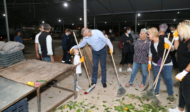 Pazarın sona ermesiyle birlikte ellerine tırmıl ve poşetleri alan gönüllülerin atık toplamasına destek olan Başkan Tarhan, kompost üretiminin seferberliğe dönüşmesinden dolayı mutlu olduğunu dile getirdi.
