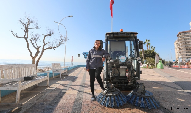 Mezitli Belediyesinde temizlik personeli olduğu esnada üniversite okuyarak mezun da olan Durul, iki de çocuk sahibi oldu."BİR KADIN İSTERSE HER İŞİ YAPABİLİR"İşinde ilk olmanın mutluluğunu yaşadığını belirten Durul, "Başkanımızın biz kadınlara olan güveninin sonucunda 7 yıldır yol süpürme aracını kullanıyorum. Belediyemizin başlattığı bu uygulama başka belediyelere de örnek oldu. Şimdi başka belediyelerin de benzer uygulamalar yaptığını duydum ve ilk olduğum için son derece mutluyum. Artık bana alıştılar. Sonra diğer belediyelerde de kadın çalışanların araç kullanmaya başladığını gururlanarak görüyorum. Başkanımız Neşet Tarhan sayesinde bu işte öncü olmaktan son derece mutluyum. Sabahın ilk ışıklarıyla aracımın direksiyonuna geçip müziğimi dinleyerek sokakları süpürüyorum. Bir kadın isterse her işi yapabilir. Kadınlar güçlüdür ve ben çalıştıkça daha güçlü olduğumu görüyorum. Kadınlar istediği zaman her şeyi başarabilir" ifadelerini kullandı. Durul, tüm kadınların 8 Mart Dünya Emekçi Kadınlar Günü kutladı."MEZİTLİ KADINLARIYLA FARK YARATIYOR"Mezitli Belediye Başkanı Tarhan ise yaptığı açıklamada, kadınların el attığı her işte başarının geldiğini vurgulayarak, "Mezitli, kadınların el emekleri ve güçleriyle fark taratan bir kent. İş başvuruları arasında üniversiteli bir kadının süpürgeci olmak istediğini gördüğümüzde kendisine güvenerek işe aldık. Meltem Durul arkadaşımız gayretli çalışması ve azmiyle hem bizlerin elini güçlendirdi hem de kadınlar için iyi bir örnek olarak öncülük etmiş oldu. Şu an Mersin sokaklarında kadın çalışanlar görebiliyorsak bu Meltem arkadaşımızın aştığı yolun sayesindedir" şeklinde konuştu.“ÇALIŞMALARIMIZI KADIN ODAKLI OLARAK YOĞUNLAŞTIRIYORUZ”Kadınların her işte başarılı olabileceğine inandığını belirten Başkan Tarhan, "Mustafa Kemal Atatürk'ün 'Şuna inanmak lazımdır ki, dünya üzerinde gördüğümüz her şey kadının eseridir' sözünden yola çıkarak mutlu Mezitli'yi kadınlarla birlikte kurmaya çalışıyoruz. Hizmet üretirken kadınlarımızı ön planda tutuyor, çalışmalarımızı kadın odaklı olarak yoğunlaştırıyoruz. Ekibimizi de bu temel üzerine kurguladık. Birlikte çalıştığımız arkadaşlarımızın ve yöneticilerimizin yarısından fazlası kadınlardan oluşuyor. Sadece Meltem kardeşimiz değil, diğer çalışma arkadaşlarımız da çok güzel işler yapmaktalar ve hizmet kalitemizi artırıyorlar" dedi.