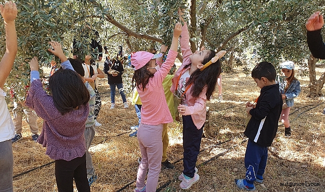 Mut'ta eğitim veren Özel Akın Çelik Anaokulu'nda öğrenim gören öğrenciler, bahçede zeytin topladılar.