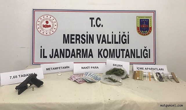 Mut'a bağlı Narlıdere Mahallesinde 3 şüphelinin uyuşturucu madde satışı yaptığı bilgisini alan jandarma ekipleri şüphelileri yakalamak amacıyla takip başlattı. Yapılan takip ve araştırma sonucunda operasyon yapan ekipler, 3 şüpheliyi yakalayarak gözaltına aldı.Yakalanan şüphelilerin ev ve araçlarında ekiplerce yapılan aramada 250 gram esrar, 15 gram metamfetamin, 4 adet uyuşturucu madde kullanma aparatı ve 1 adet tabanca ile suçtan elde edilen 5 bin lira para ele geçirildi.Yakalanan şüpheliler işlemleri tamamlanmak üzere Jandarma Komutanlığına götürüldü