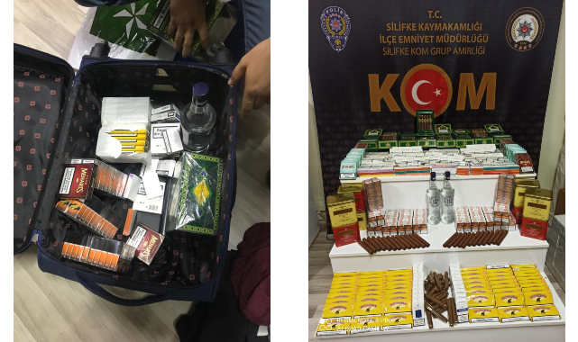 Yapılan aramalarda;6120 Adet Elektronik sigara ucu, 4310 Adet Puro, 55 paket tütün, 20 paket sigara, 8 kutu çay, 2 şişe içki ele geçirildi.