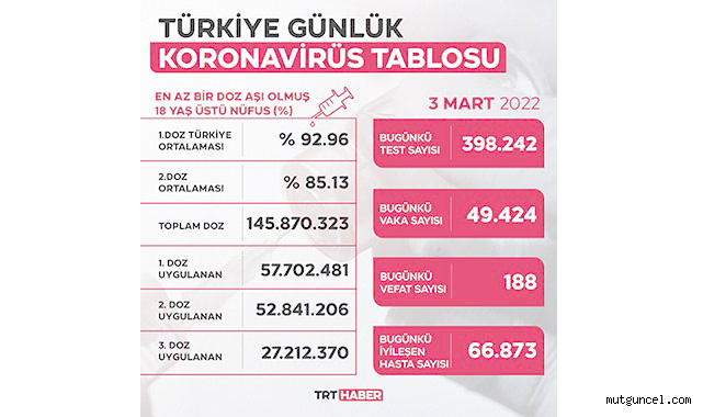 Gündem Yayınlanma: 01 Mart 2022 - 21:07 Güncelleme: 04 Mart 2022 - 00:07 Günlük Koronavirüs vakası Sağlık Bakanlığı son 24 saatteki COVID-19 verilerini açıkladı Gündem 01 Mart 2022 - 21:07 Güncelleme: 04 Mart 2022 - 00:07 Yorumlar Dinle Yazdır A Büyüt A Küçült Yorumlar Sağlık Bakanlığı son 24 saatteki COVID-19 verilerini açıkladı YORUMLAR adlı kullanıcıya cevap x Gönder ANASAYFAYA DÖNMEK İÇİN TIKLAYINIZ İlginizi Çekebilir Mersin'in yeni Emniyet Müdürü İdris Yılmaz oldu Ormanlara giriş yasağı 15 Kasım'a kadar uzatıldı Mut'un yaylalarında 30 Ağustos coşkusu Mut'a yeni kaymakam Son Haberler Kaymakam'dan okul ziyaretleri Mersin'de uyuşturucu operasyonu Fatma Çelik Kovan'dan Mut TSO'ya öneriler Mut TSO binasının temeli atıldı 'Kadın Dostu Kentler' için 25 belediye birlikte çalışıyor Tarsus CHP’den ekmek dayanışması Tarsus CHP’den ekmek dayanışması