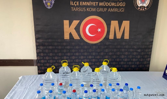 Tarsus'ta 50 litre kaçak içki ele geçirildi