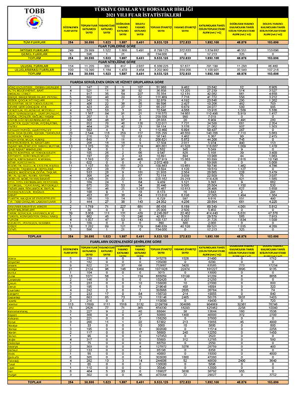 2021 yılında yurt içinde toplam 254 fuar düzenlendi.