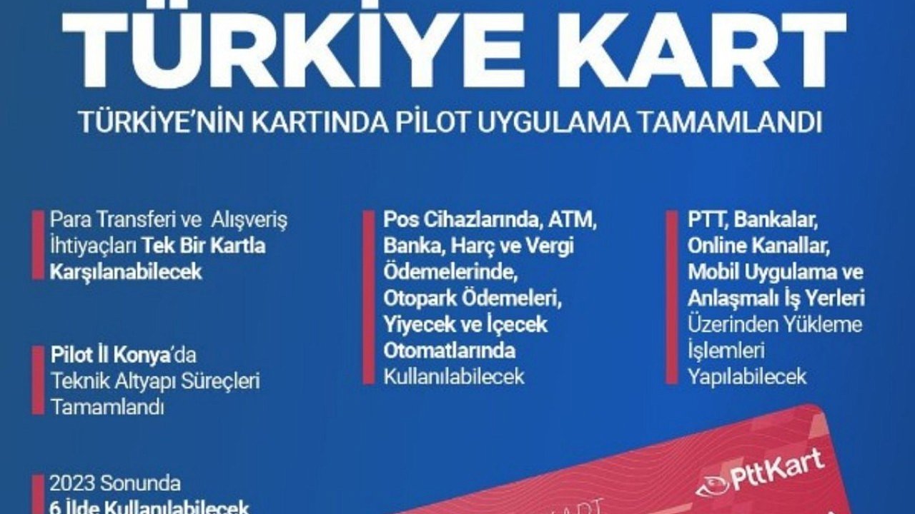 Ulaştırma ve Altyapı Bakanı Abdulkadir Uraloğlu, Türkiye Kart projesinin pilot uygulamasının Konya’da tamamlandığını, 81 ilde yaygın hale getirilmesi için çalışmaların sürdüğünü kaydederek, “İlk adımı Konya’da attık. Kayseri, Yozgat ve Gümüşhane’de, belediyeler ile sözleşme süreçleri de tamamlandı.” dedi.Ulaştırma ve Altyapı Bakanı Abdulkadir Uraloğlu, Türkiye Kart ile ilgili değerlendirmelerde bulundu. Tüm ulaşım hizmetlerinden ve finansal sistemden faydalanma imkânı sunan Türkiye Kart ile ilgili olarak “Proje kapsamında amacımız, şehir içi toplu taşıma hizmetlerinin sunulduğu ulaşım sektöründeki tüm paydaşların dahil olacağı bir takas, switch, mahsuplaşma ve operasyon merkezinin kurulması ile Türkiye Kart’ı her alanda devreye sokmak. Türkiye Kart’ın ulaşım araçları, para transferleri, alış-veriş ve birçok ihtiyaçlarda tek kart olarak kullanılabilmesini sağlamak.” diye konuştu.ENTEGRASYON SÜRECİ TAMAMLANDIBakan Uraloğlu, “Konya’da teknik altyapı süreçleri tamamlandı. İstanbul'da yeni havalimanı metro hattı entegrasyonu da hazır. Kayseri Büyükşehir, Yozgat ve Gümüşhane Belediyeleri ile sözleşme süreci bitti. Cumhurbaşkanlığı Yıllık Programı doğrultusunda 2023 yılı sonuna kadar hedefimiz 6 ilde projeyi devreye sokmak. TCDD ve TCDD Taşımacılık tarafından işletilen tüm raylı sistemlerde Türkiye Kart'ın devreye alınmasına yönelik çatı sözleşme süreçleri de devam ediyor. GAZİRAY, BAŞKENTRAY ve İZBAN hatlarında sözleşme sonrası entegrasyon süreçleri başlatılacak. İlerleyen süreçte diğer belediyeler ve operatörler, sisteme dahil edilerek, projenin yaygınlaştırılmasını hedefliyoruz. Türkiye Kart Projesi ulaşım sektörüne önemli bir dönüşüm getirecek. Vatandaşlarımız daha kolay, hızlı ve etkili bir şekilde ulaşım ve ödeme işlemlerini gerçekleştirebilecek” diye konuştu.TÜRKİYE KART’IN ÖZELLİKLERİYıl sonunda 6 ilde kullanılmaya başlanacak olan Türkiye Kart, toplu ulaşım ile birlikte POS ve ATM cihazlarında, belediye harçları ve vergi ödemeleri, otopark ödemeleri, anlaşmalı iş yerleri, taksi ödemeleri, yiyecek ve içecek otomatlarında kullanılabilecek. Ayrıca, PTT kanalları, bankalar ve devlet kurumları, online kanallar, mobil uygulama ve anlaşmalı iş yerleri üzerinden yükleme işlemleri de yapılabilecek.
