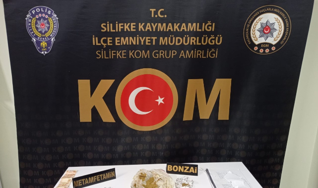 Silifke İlçe Emniyet Müdürlüğü KOM Grup Amirliği tarafından yapılan aramada uyuşturucu ele geçirildi.